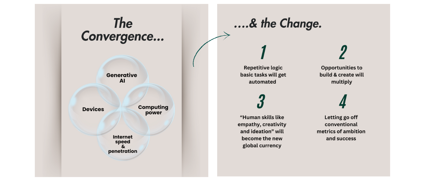 The grand convergence outlined below is creating new opportunities and rewriting the rules of work—and the skills you need to succeed. If you’re gearing up for the job market, here’s the good news: you have time to seize these opportunities. But it starts with focusing on two game-changing areas: